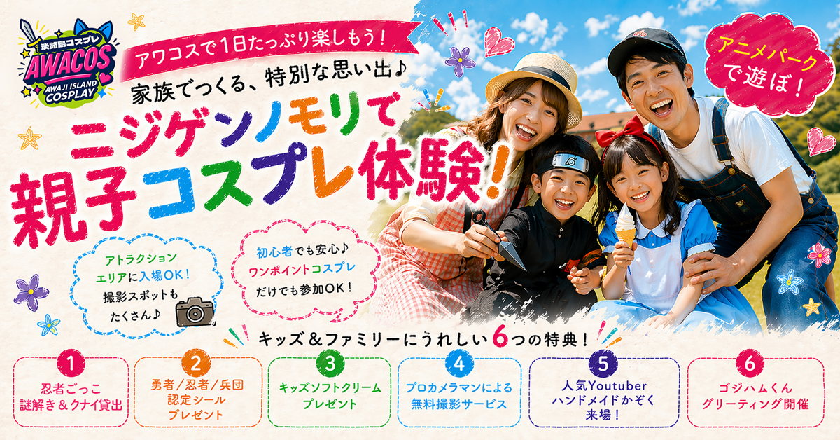ニジゲンノモリ×世界コスプレサミット『第3回 淡路島COSPLAY~アワコス~』ファミリー向け「キッズプログラム」を大幅拡充!忍者ごっこや無料撮影サービスを新たに実施