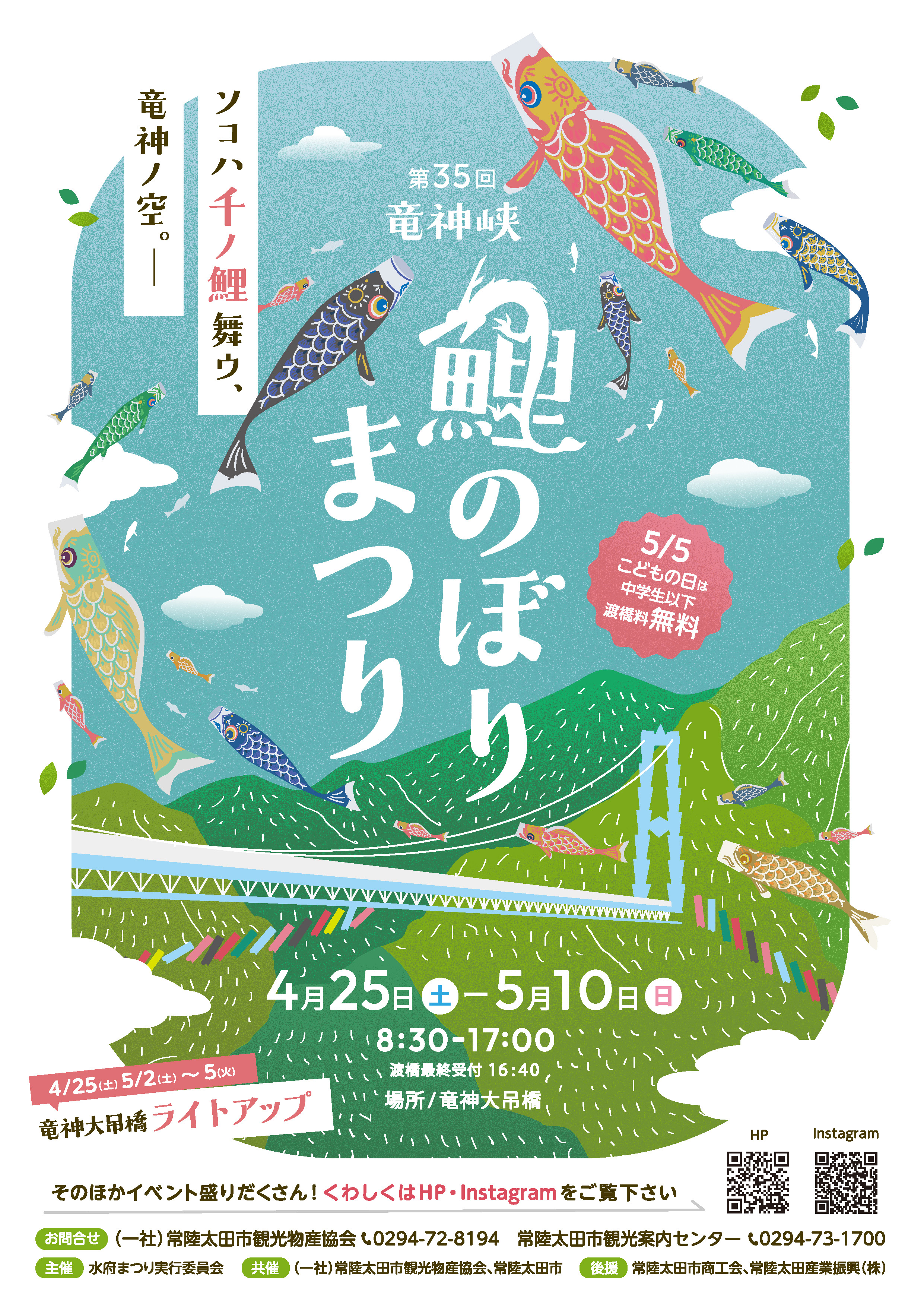 【GWは茨城県常陸太田市へ1.】約1,000匹の鯉のぼりが遊泳する「竜神峡鯉のぼりまつり」を開催