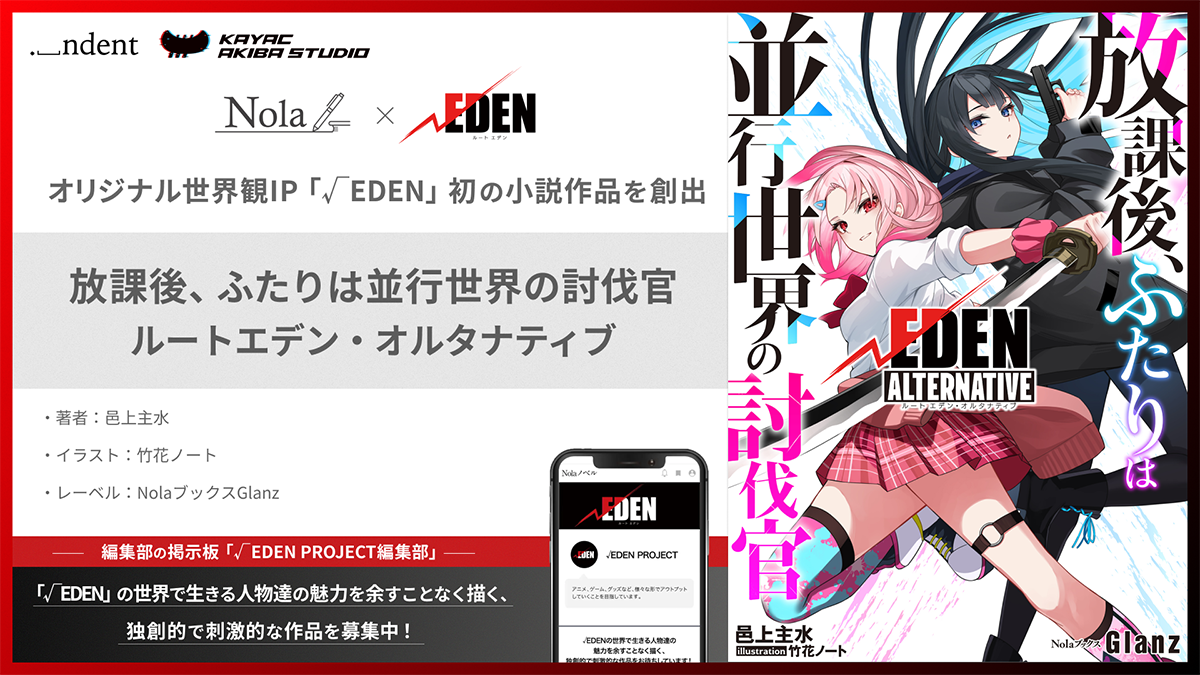 indent×カヤックアキバスタジオ、オリジナル世界観IP「√EDEN」初の小説作品を刊行『放課後、ふたりは並行世界の討伐官 ルートエデン・オルタナティブ』
