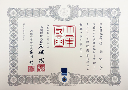 【個別指導キャンパス】新教育総合研究会株式会社 代表 福盛訓之 紺綬褒章飾版 受章のお知らせ