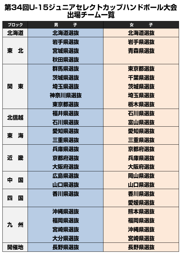 第34回U-15ジュニアセレクトカップハンドボール大会 組み合わせ抽選結果のお知らせ