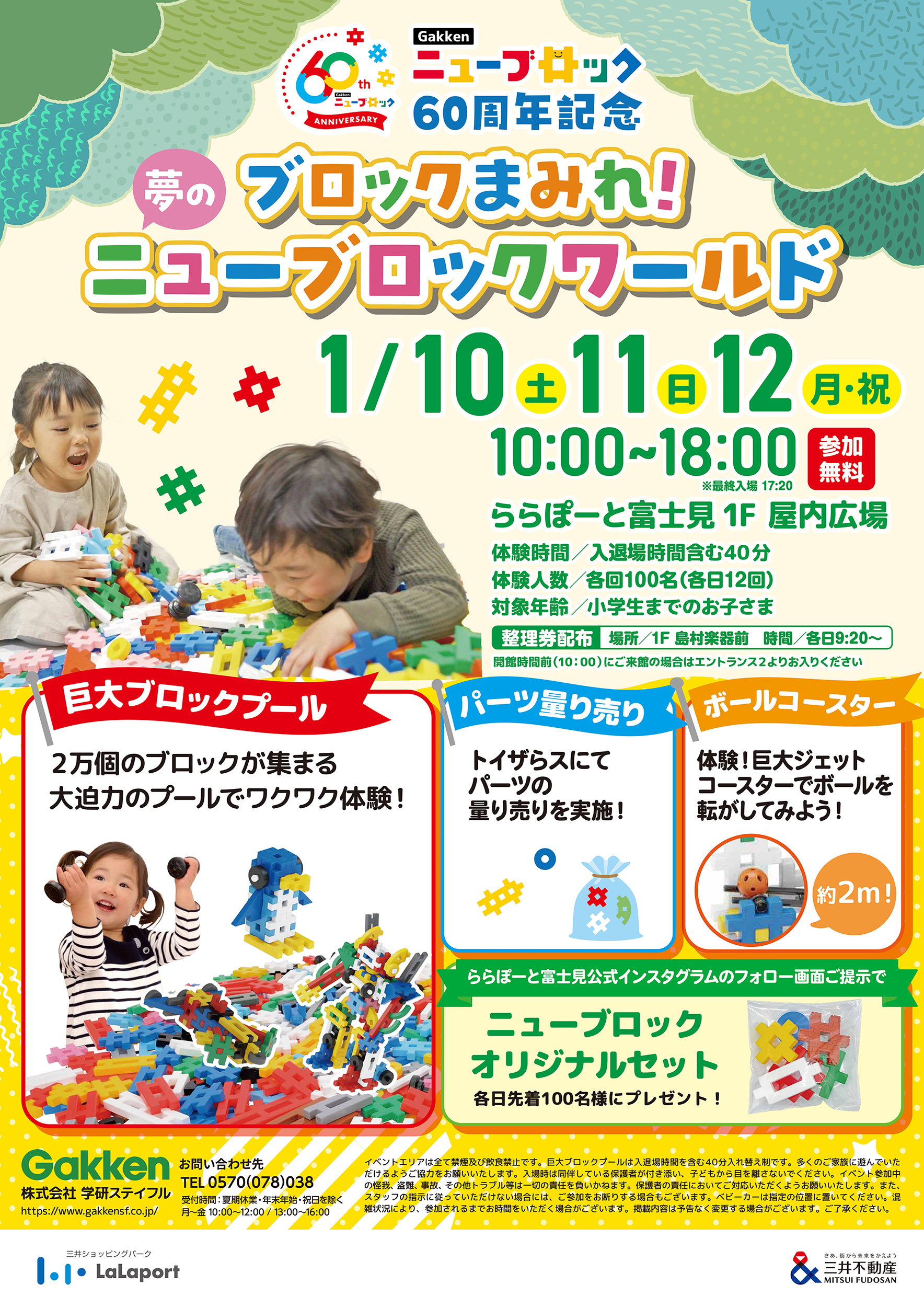 2万個のブロックで無料で遊べる!『ニューブロックワールド』ららぽーと富士見で開催決定【60周年記念イベント】