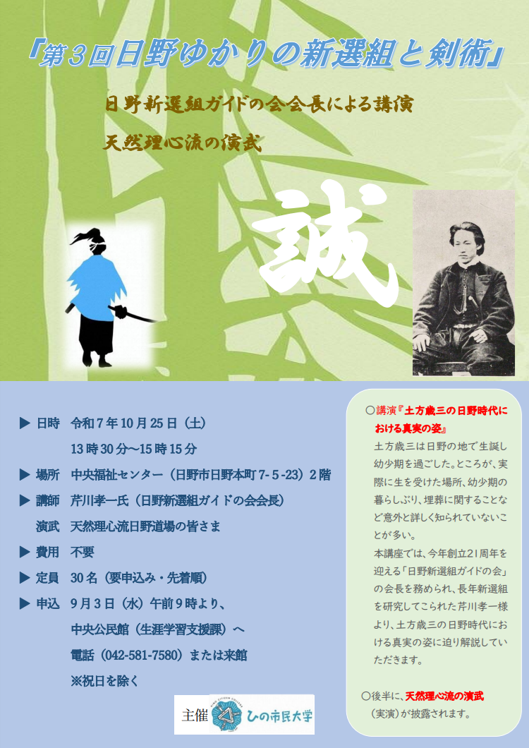 ひの市民大学「第3回 日野ゆかりの新選組と剣術」
