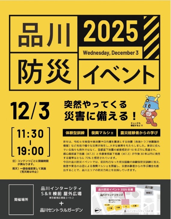 体験型訓練・復興マルシェ・震災経験者からの学び「品川防災イベント2025」開催のお知らせ