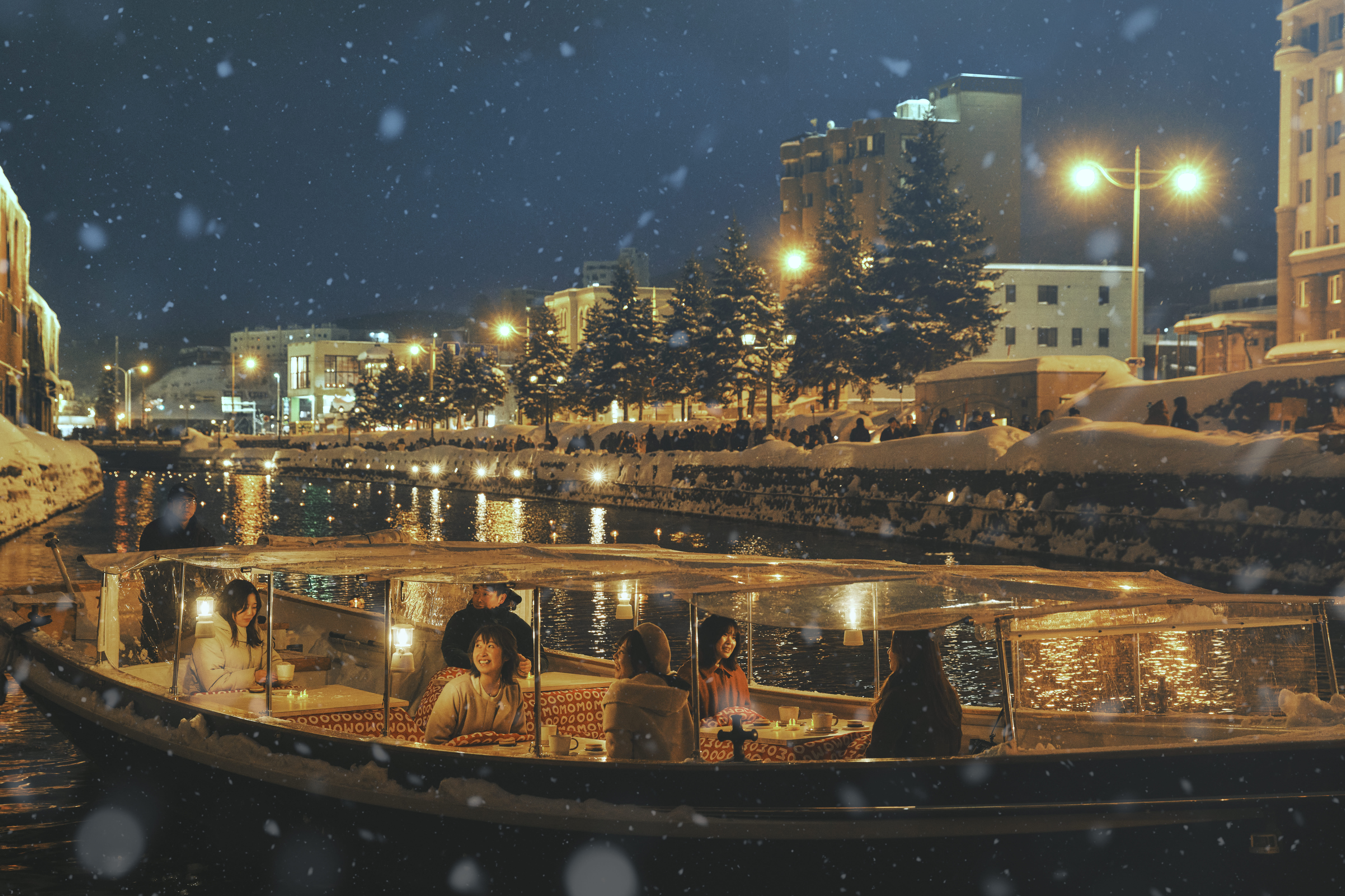 【OMO5小樽】船上のこたつに包まれ、雪が降り積もるレトロな街並みを眺める「小樽運河こたつクルージング」今年も開催