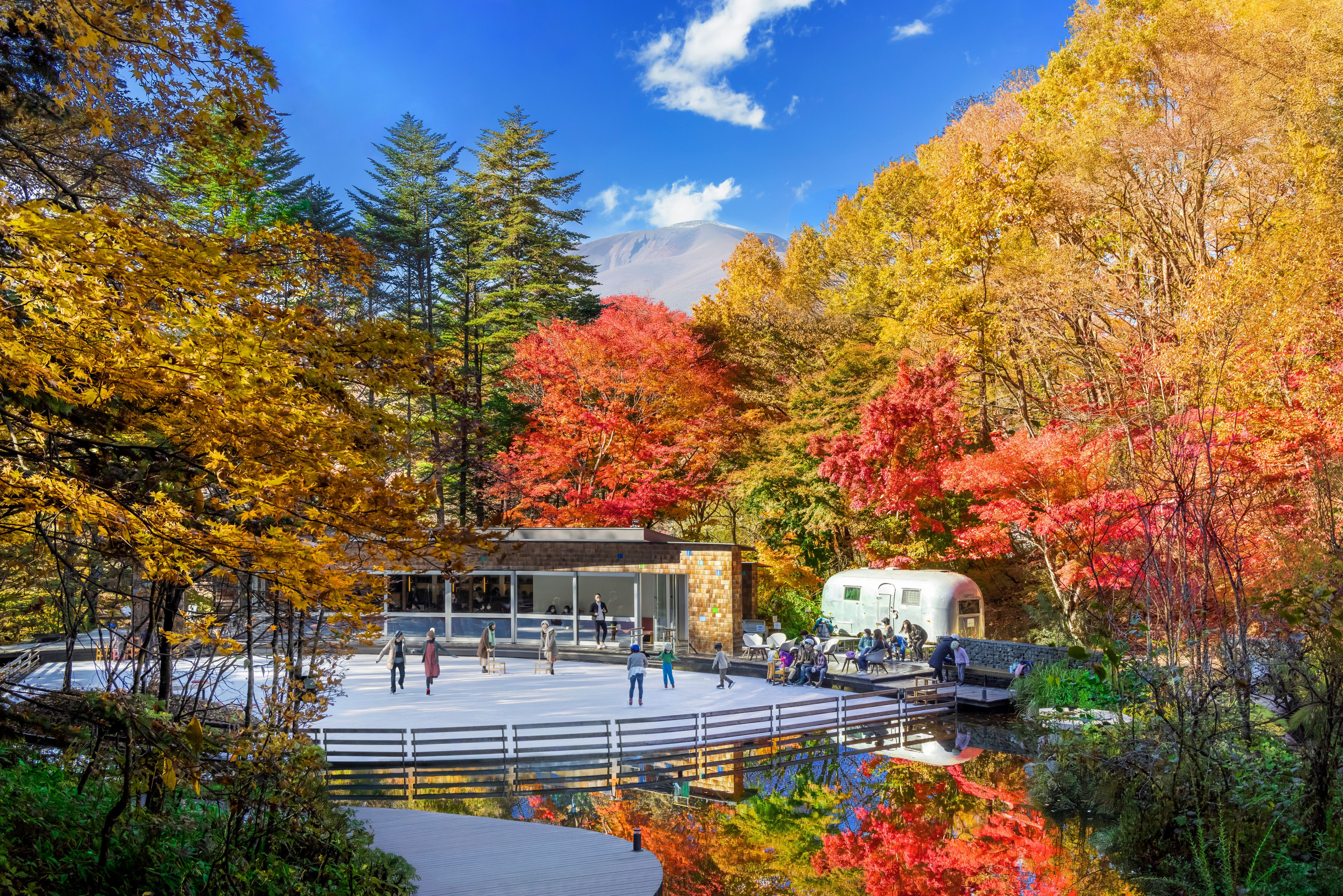 【軽井沢星野エリア】紅葉に包まれる森のスケート場「ケラ池スケートリンク」、日本一早く10月17日(金)オープン!