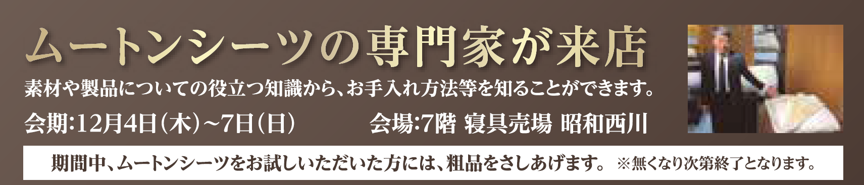 冬の眠りに上質なぬくもりを【昭和西川】ムートン体感フェア開催!<12月4日(木)~7日(日)>阪神梅田本店 7階寝具売場にて