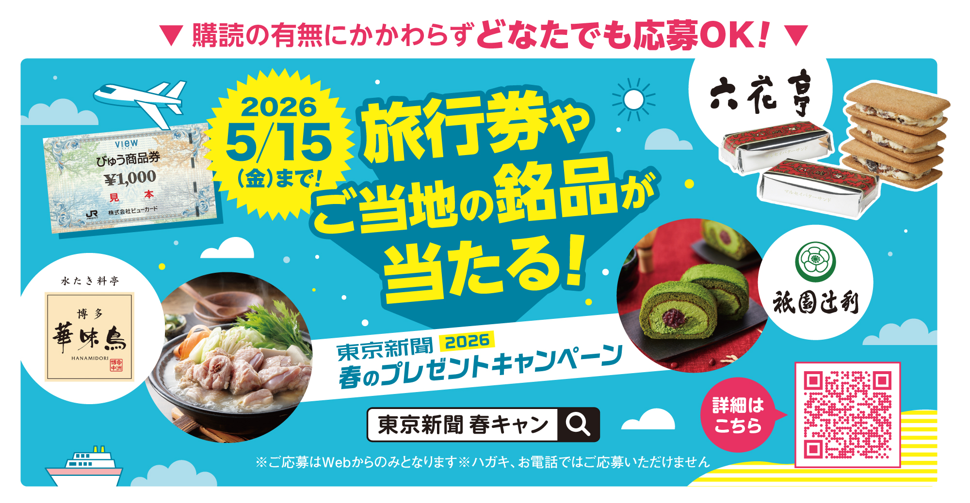 旅行券30,000円分やご当地の銘品が総勢100名に当たる!春のプレゼントキャンペーン実施中♪
