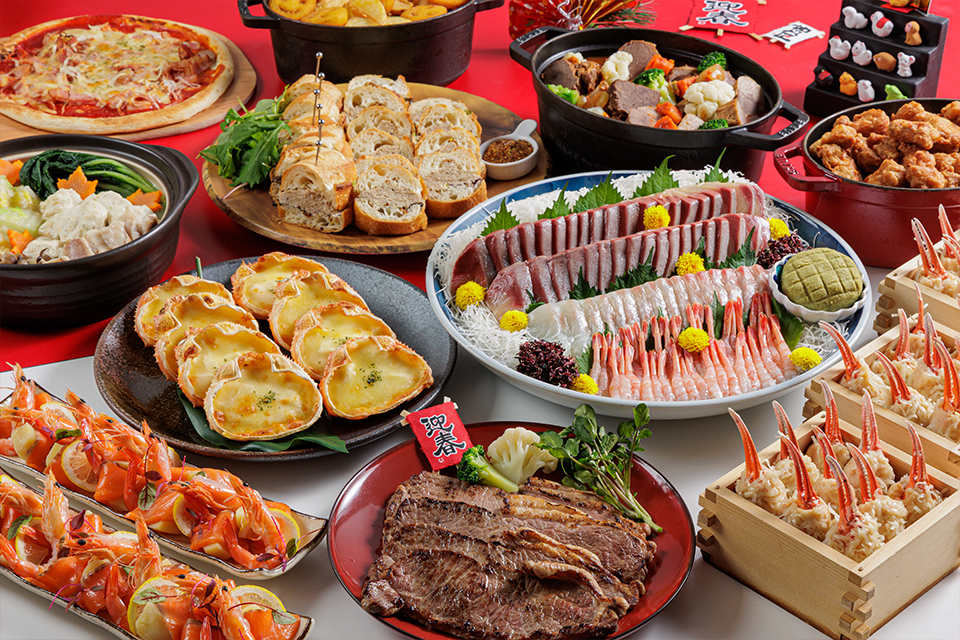 焼きたてステーキにあんこうと海老しんじょうの和風鍋、蟹甲羅グラタンなど豊富な料理で新年の幕開けを楽しむ4日間限定の新春ランチブッフェを開催