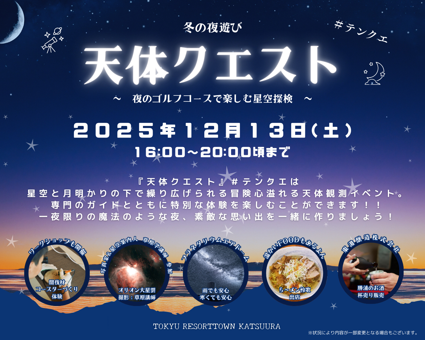 海辺のリゾート・勝浦で冬の星空観賞 『冬の夜遊び 天体クエスト~夜のゴルフコースで楽しむ星空探検~』開催