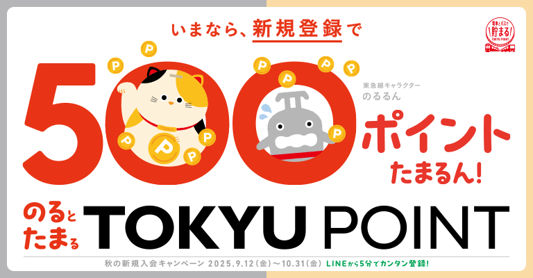 9月12日から10月31日までの期間限定で「のるとたまるTOKYU POINT」 新規登録&定期券購入のおトクなキャンペーンを実施します!
