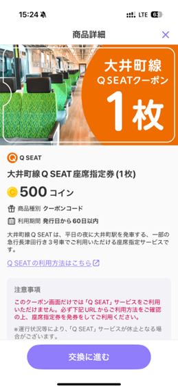 9月11日から、「TOQ COIN」サービスで貯めたコインを有料座席指定サービス「Q SEAT」の座席指定券に交換できるようになりました!