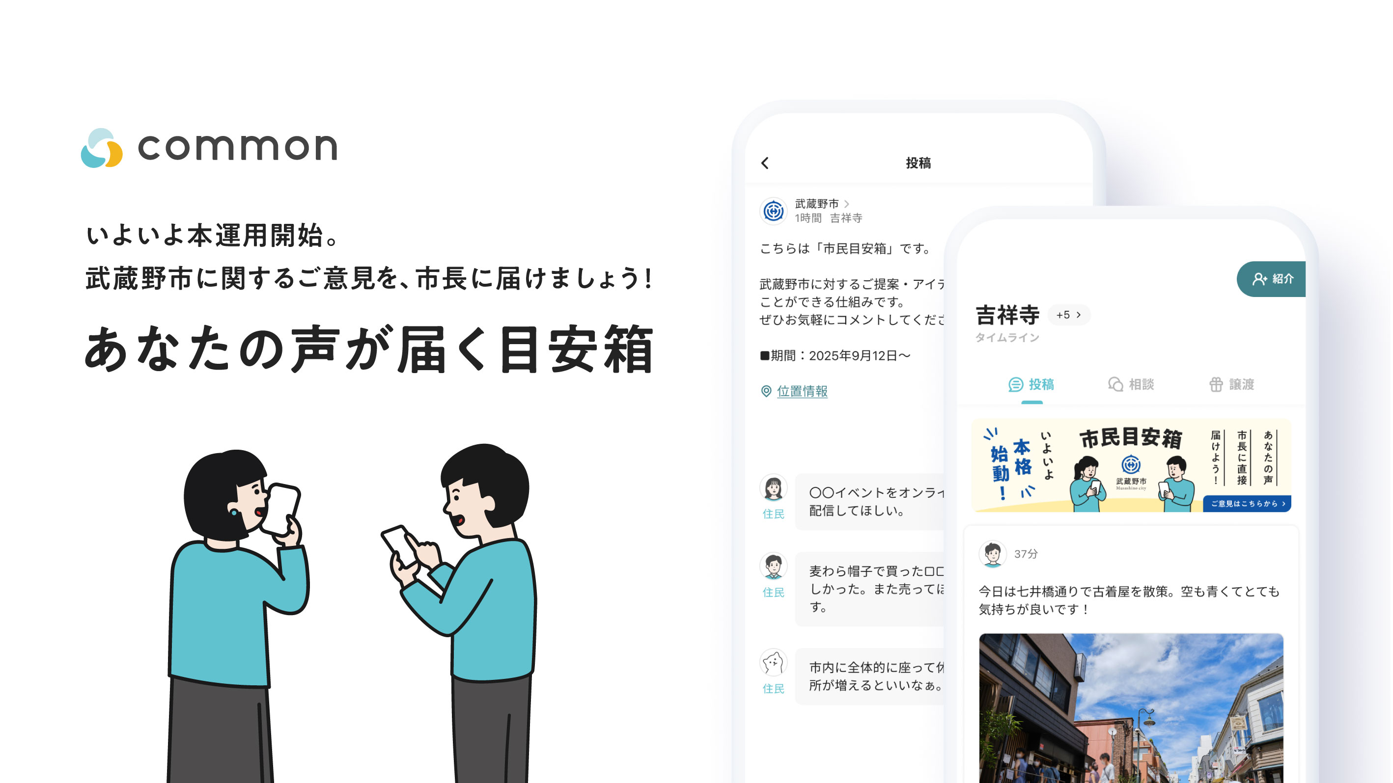 まちづくりプラットフォームアプリ「common」における武蔵野市エリアで「市民目安箱」設置の本運用を9月12日から開始