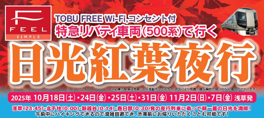 人気企画が今年も登場!紅葉シーズンの奥日光を早朝から楽しむ当社限定商品「日光紅葉夜行23:45」を発売します!