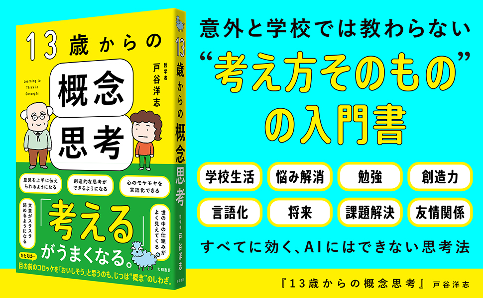 学校では教えてくれない“一生役立つ考える力”が身につく1冊『13歳からの概念思考』発売(11/19)。