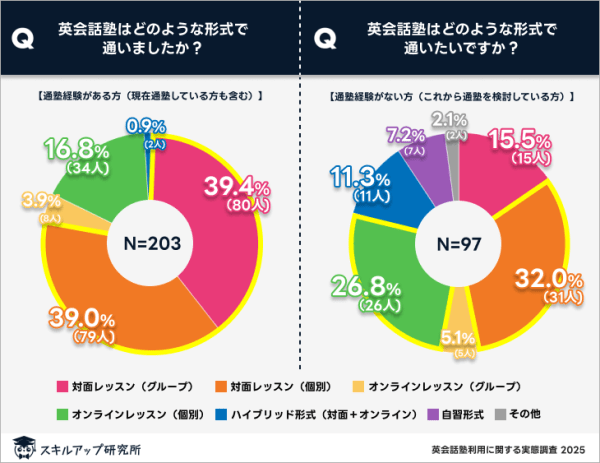 【2025最新】英会話塾、経験者の8割が「対面」を選択|未経験者は「オンライン」志向強まる