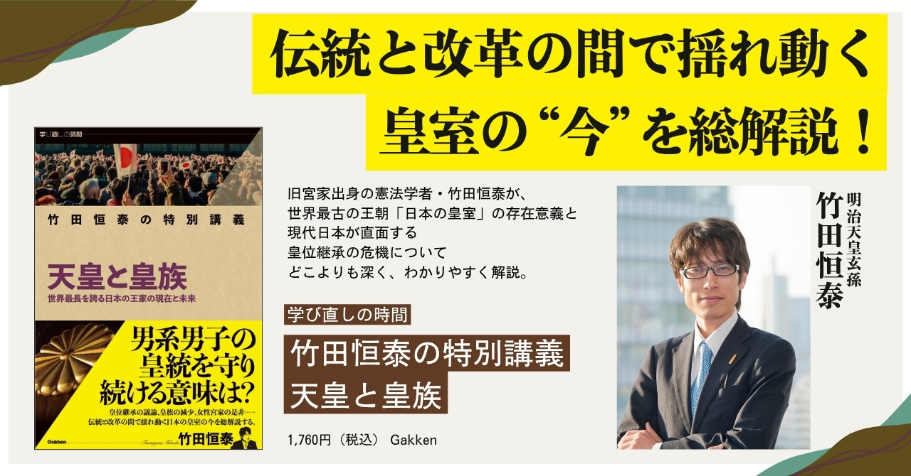 竹田恒泰が日本の皇室を総解説した「天皇と皇族」の教養書が登場