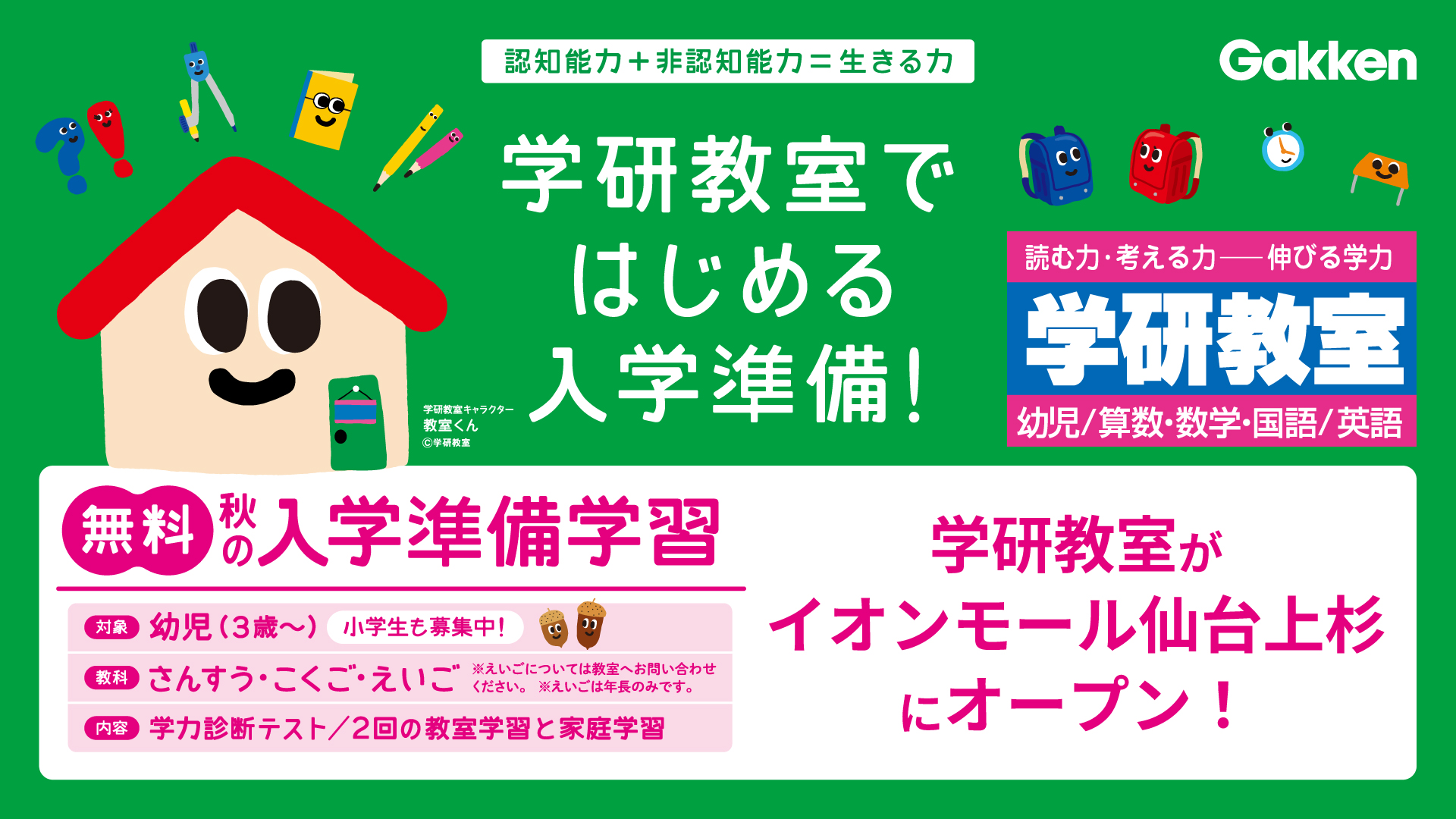 【東北イオンモール初】学研教室がイオンモール仙台上杉に2025年10月オープン!