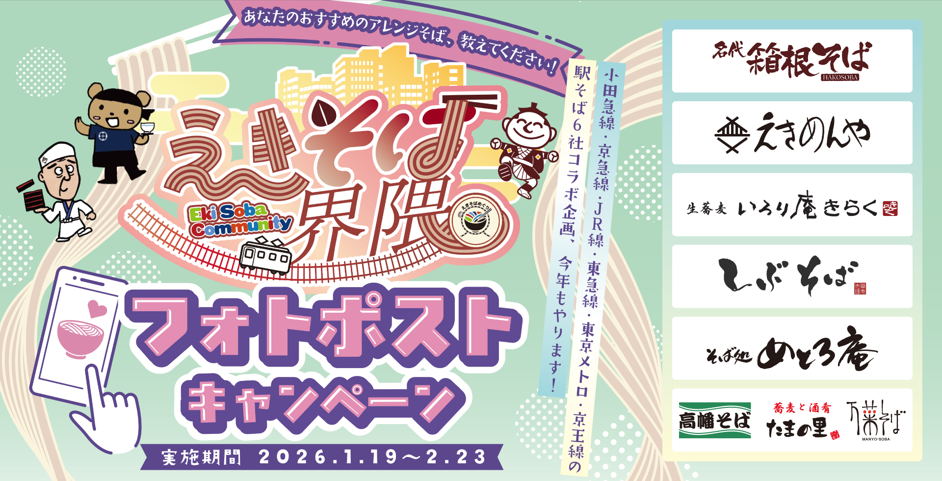 関東の駅そば運営会社6社 コラボ企画第4弾 あなただけのえきそばアレンジ教えてください。168店舗横断 「えきそば界隈 フォトポストキャンペーン」実施!