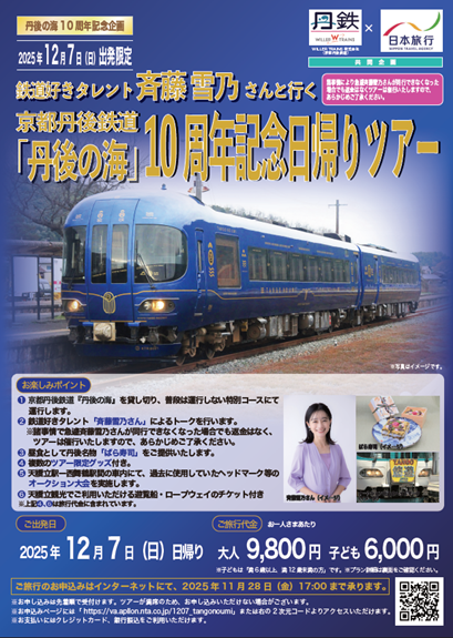 鉄道好きタレント斉藤雪乃さんと行く『丹後の海』10周年記念ツアーの発売について