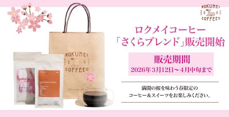 【ロクメイコーヒー】春の期間限定コーヒー「さくらブレンド」や、特別なスイーツ、厳選した商品を詰め合わせた福袋を販売する「さくらフェア」を開催中。