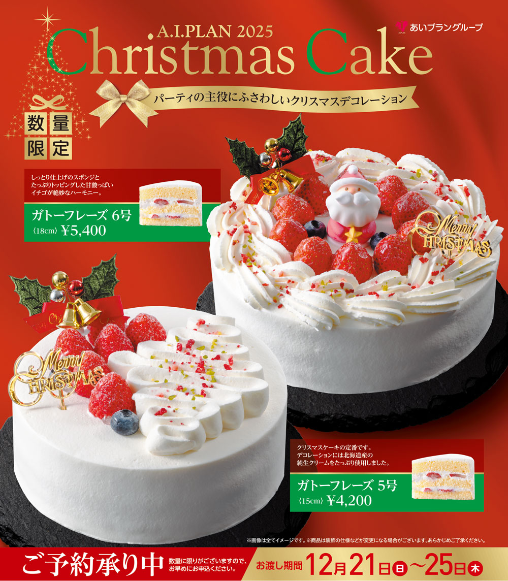 あいプランのレストラン4店舗で、心あたたまるクリスマスケーキ予約受付中
