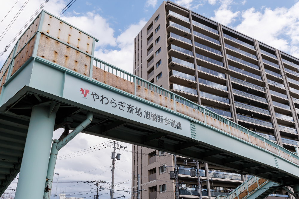 豊平区水車町の歩道橋に「やわらぎ斎場 旭横断歩道橋」