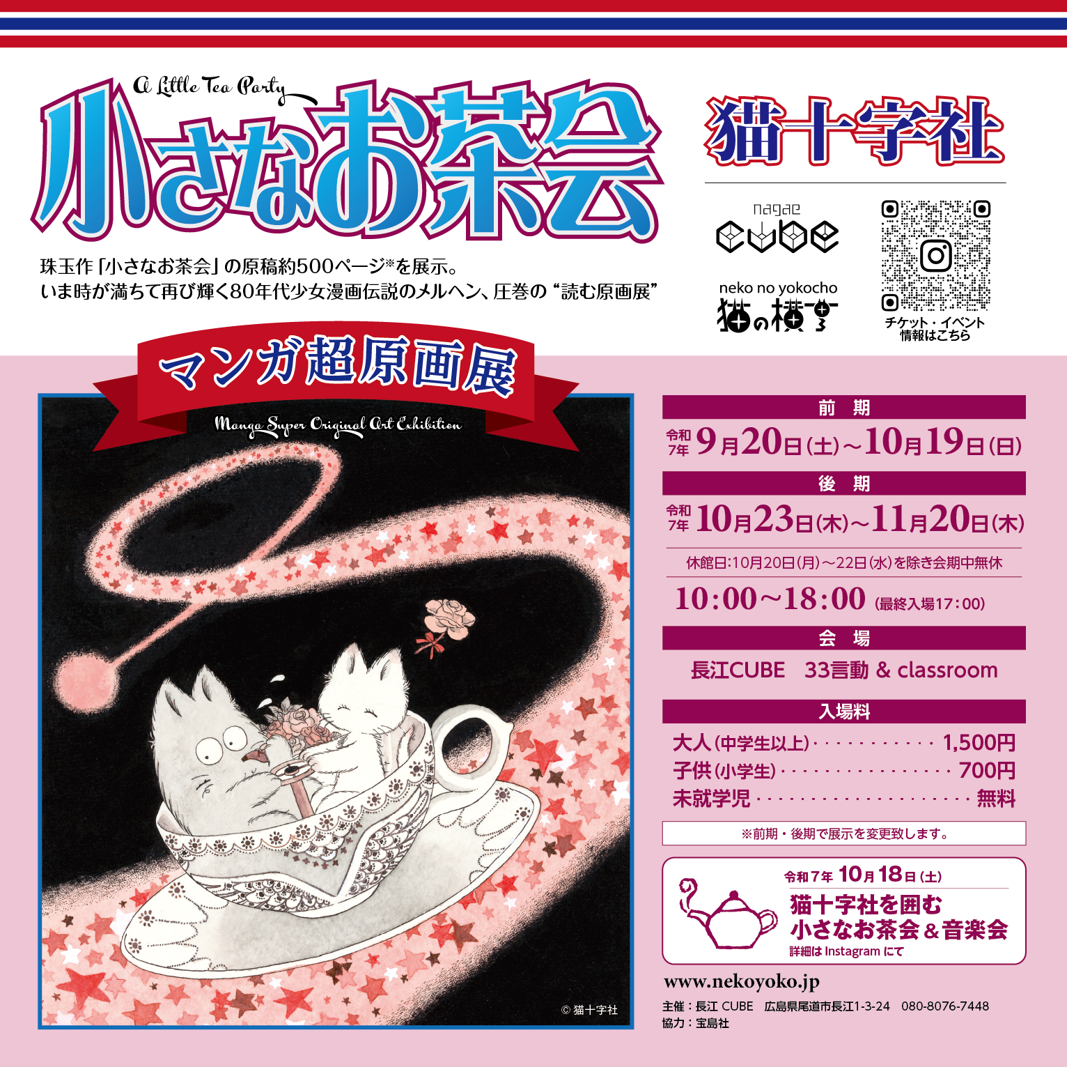 「猫十字社『小さなお茶会』マンガ超原画展」を開催中の猫の横丁@長江CUBEで作家を囲むファンイベント「猫十字社を囲む小さなお茶会&音楽会」10月18日(土)開催