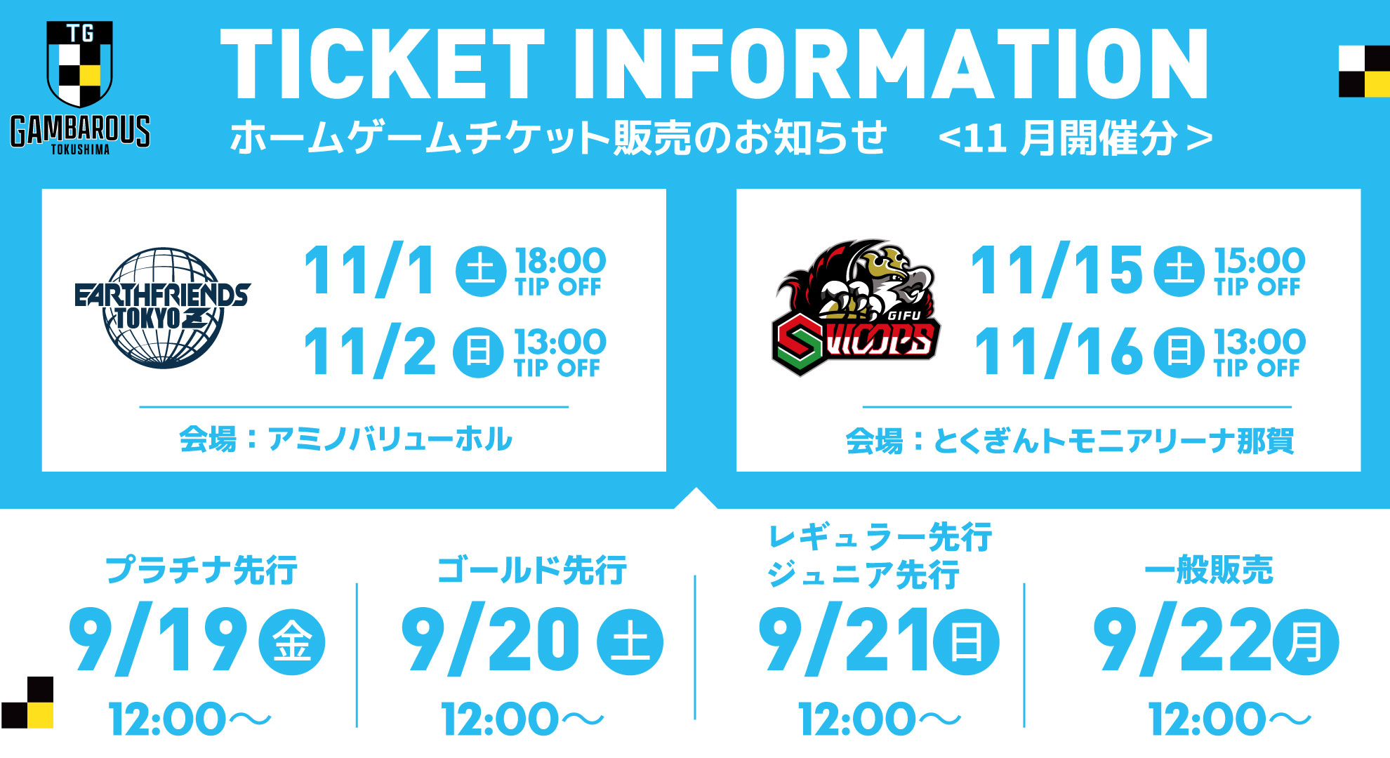 【徳島ガンバロウズ】11月開催ホームゲーム観戦チケット 販売のお知らせ