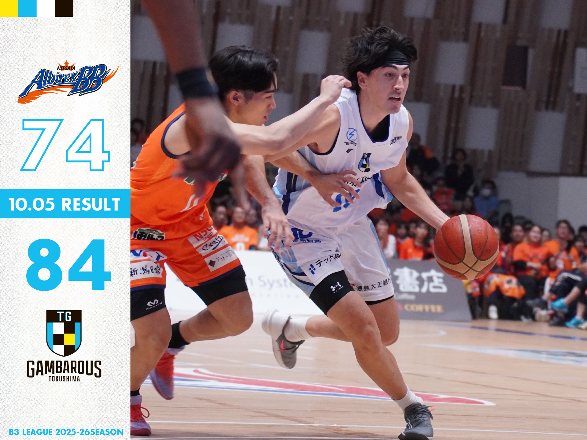 【徳島ガンバロウズ】試合結果/B3リーグ 2025-26シーズン第2節 vs新潟アルビレックスBB<GAME1>