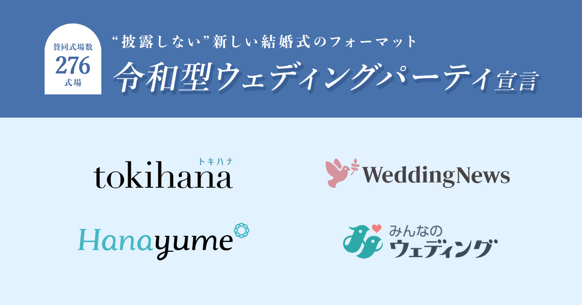 【みんなのウェディング】結婚式は"披露する"場から"一緒に楽しむ"場へ!ブライダルメディア4社合同で「令和型ウェディングパーティ」を推進