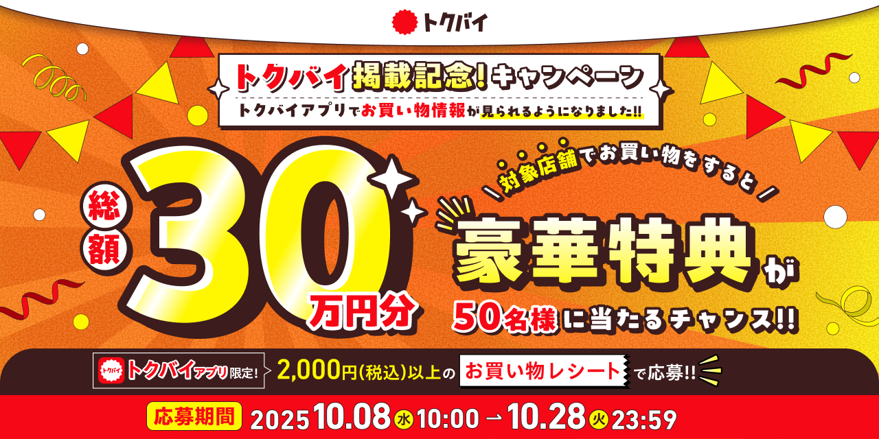 チラシ・買い物情報サービス「トクバイ」が総額30万円分の豪華賞品が当たる「トクバイ掲載記念!キャンペーン」を開催