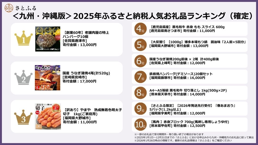 【さとふるニュースレター】<九州・沖縄版>2025年ふるさと納税人気お礼品ランキング(確定)