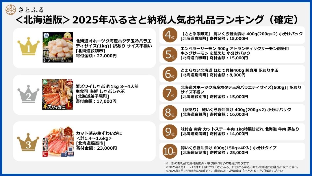 【さとふるニュースレター】<北海道版>2025年ふるさと納税人気お礼品ランキング(確定)
