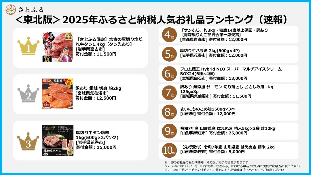 【さとふるニュースレター】<東北版>2025年ふるさと納税人気お礼品ランキング(速報)