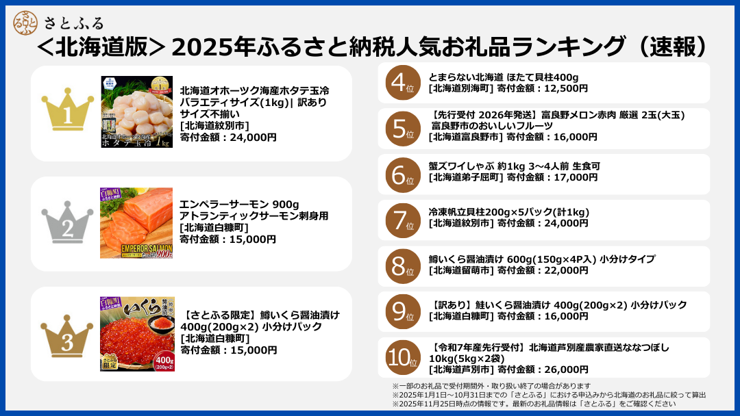 【さとふるニュースレター】<北海道版>2025年ふるさと納税人気お礼品ランキング(速報)