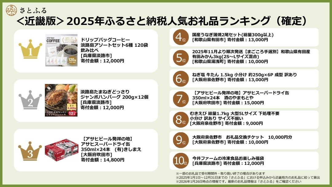 【さとふるニュースレター】<近畿版>2025年ふるさと納税人気お礼品ランキング(確定)