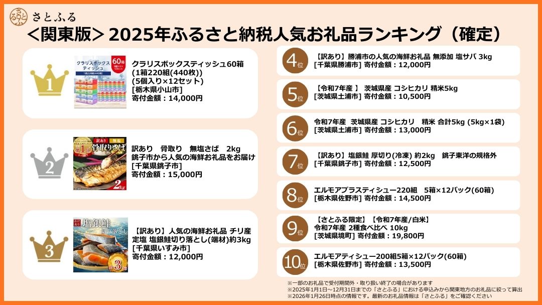 【さとふるニュースレター】<関東版>2025年ふるさと納税人気お礼品ランキング(確定)