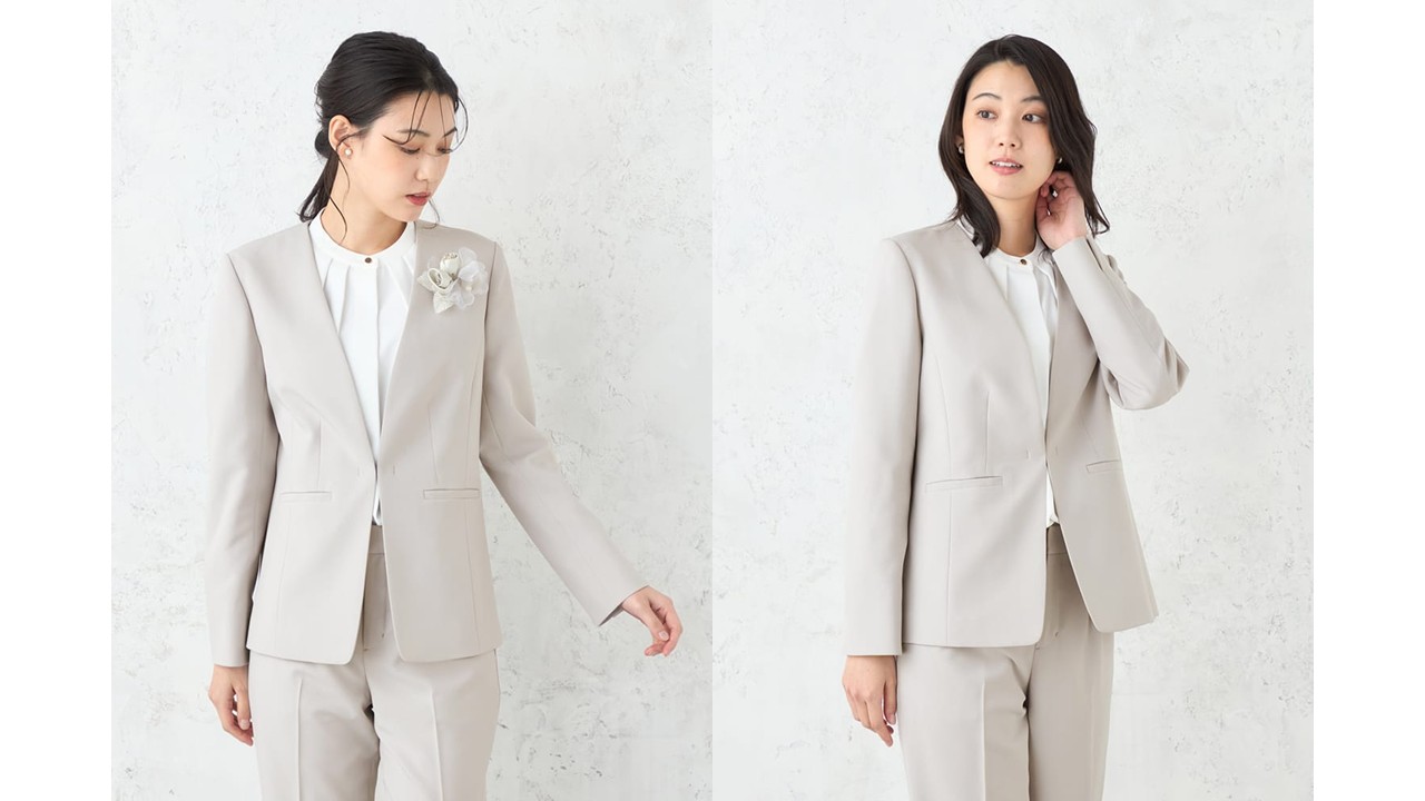 セレモニーシーンを美しく快適に彩る「SOFFICEノーカラージャケットパンツ ブラウス3点セット」12月13日(土)より全国のはるやま店舗にて発売!PR TIMES トレンド