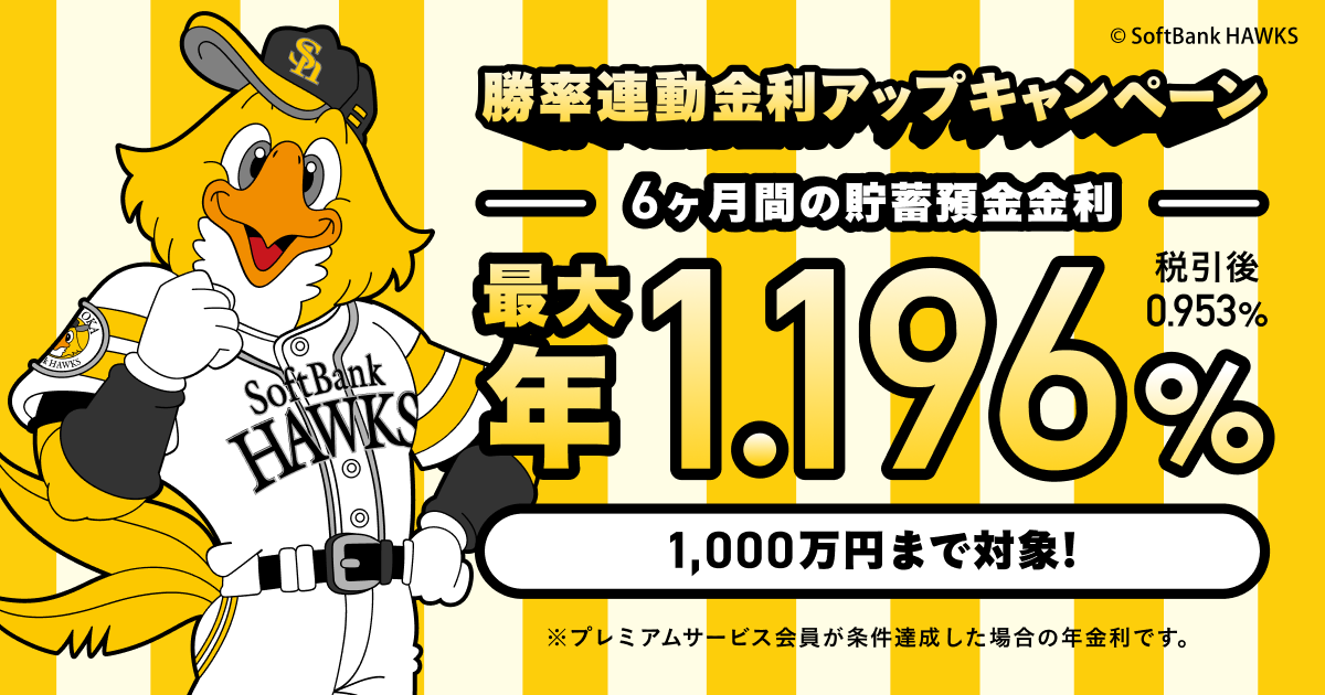 祝!ホークス優勝!勝率連動金利アップキャンペーンの実施
