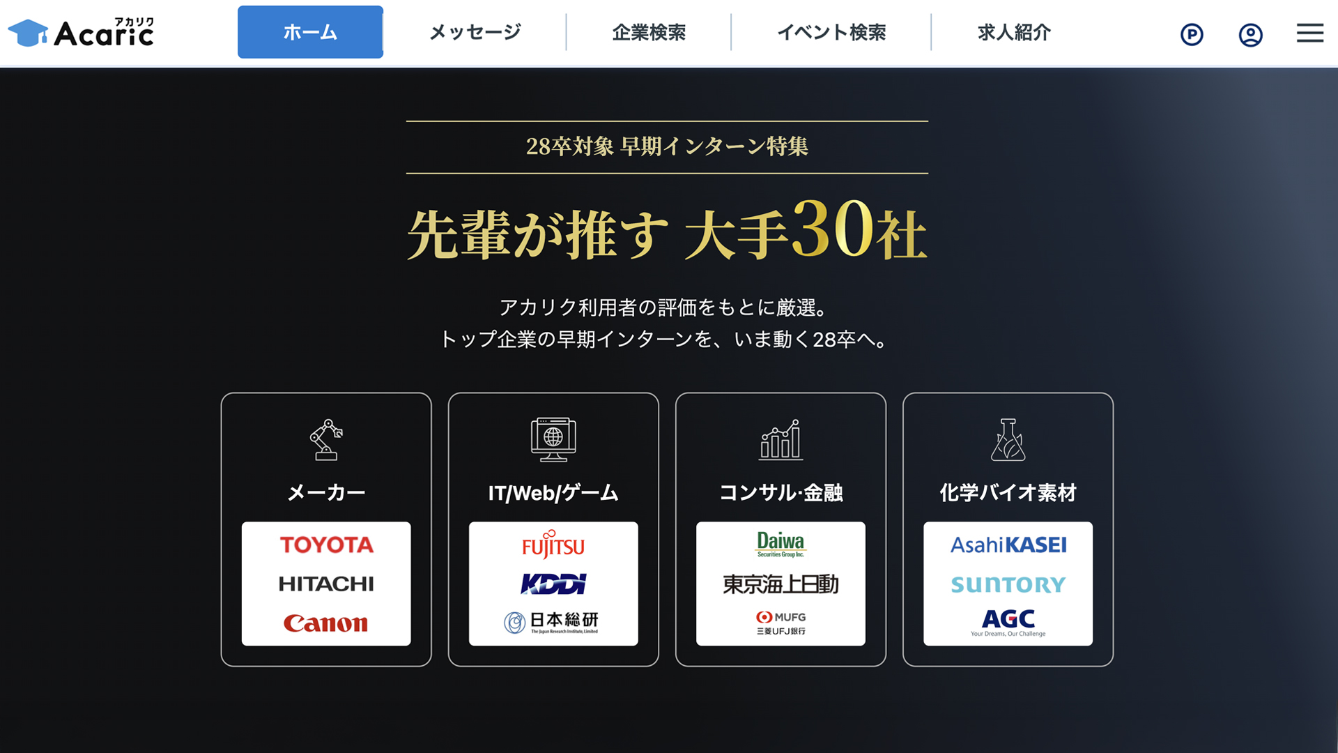 就活スタートダッシュを応援!アカリク、28卒対象「早期インターン特集 ~先輩が推す大手30社~」を公開