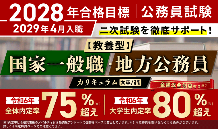 公務員試験【2028年合格目標】【教養型】国家一般職・地方公務員カリキュラム(フル・ライト)(大卒/2年コース)リリース!