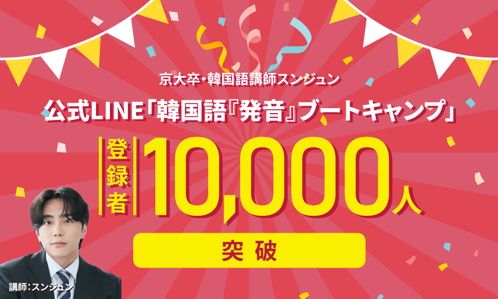 京大卒・韓国語講師スンジュンの公式LINE「韓国語『発音』ブートキャンプ」、登録者数1万人突破のお知らせ