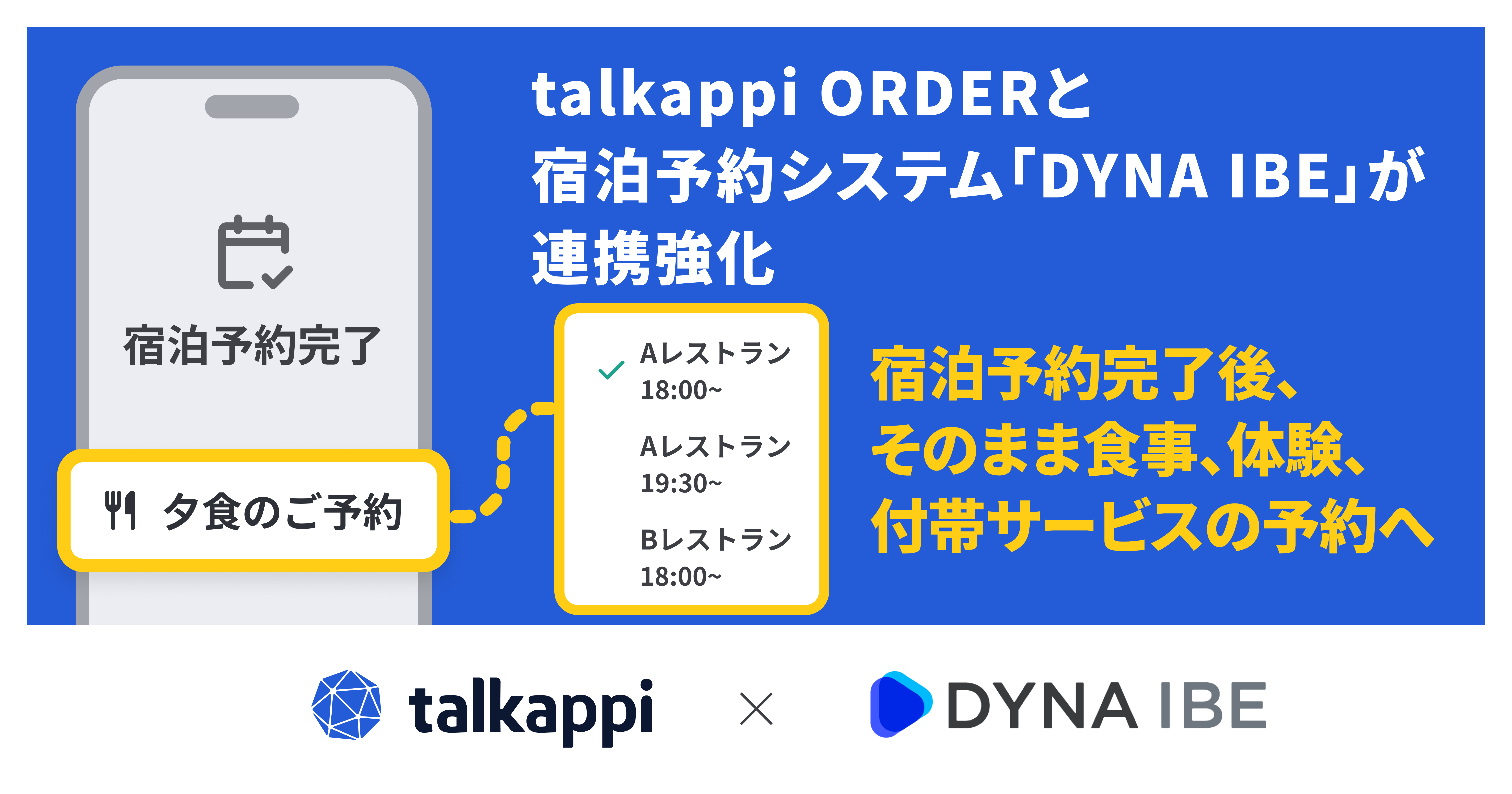 宿泊予約完了後、そのまま食事・体験・付帯サービスの予約へ 「talkappi」と宿泊予約システム「DYNA IBE」が連携強化