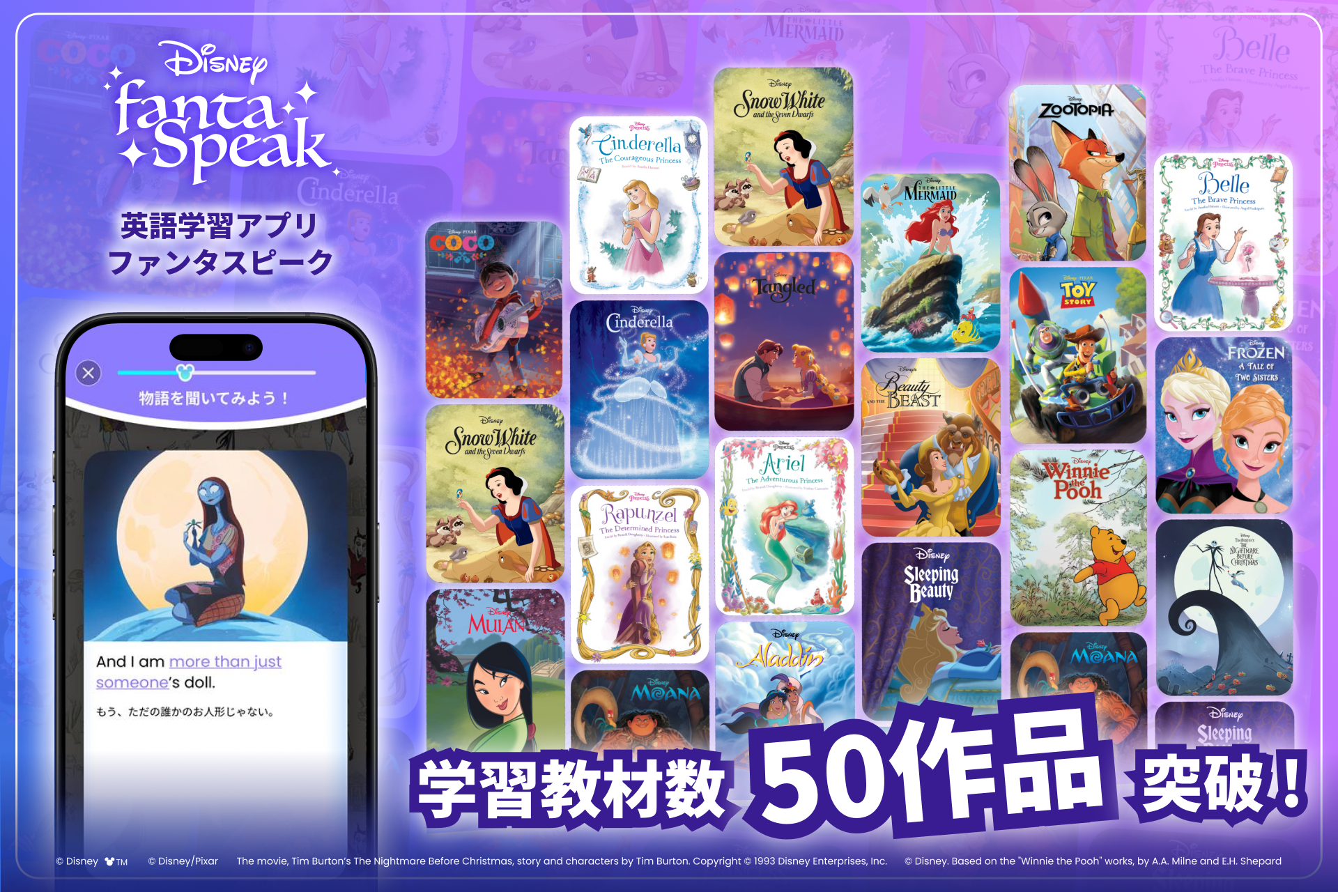 ディズニーやピクサーの物語で学ぶ英語アプリ「ディズニー ファンタスピーク」、学習教材が50作品を突破!