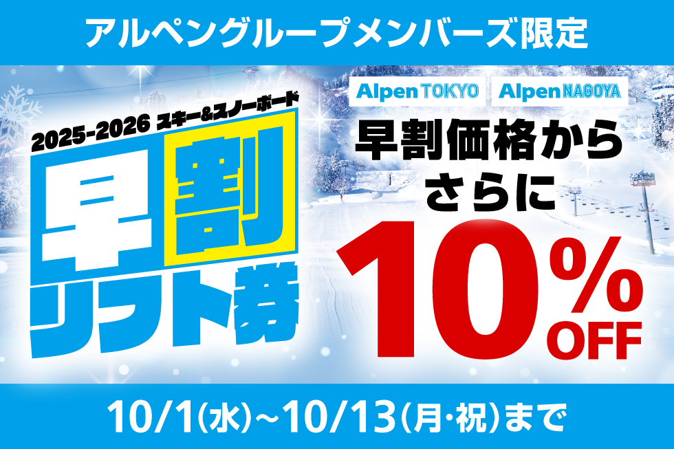 全国96か所のスキー場 2025/2026シーズン早割リフト券の発売開始!Alpen TOKYO・Alpen NAGOYAでは早割価格からさらに10%OFFになるお得なキャンペーンも開催!