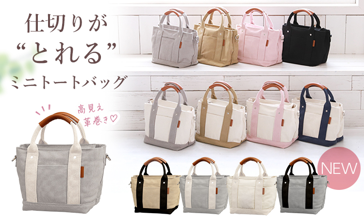 【annekor|アンコール】高見えする「革巻き持ち手」ミニトートバッグ。仕切り&底板など多機能で整理しやすいミニバッグに新色登場。