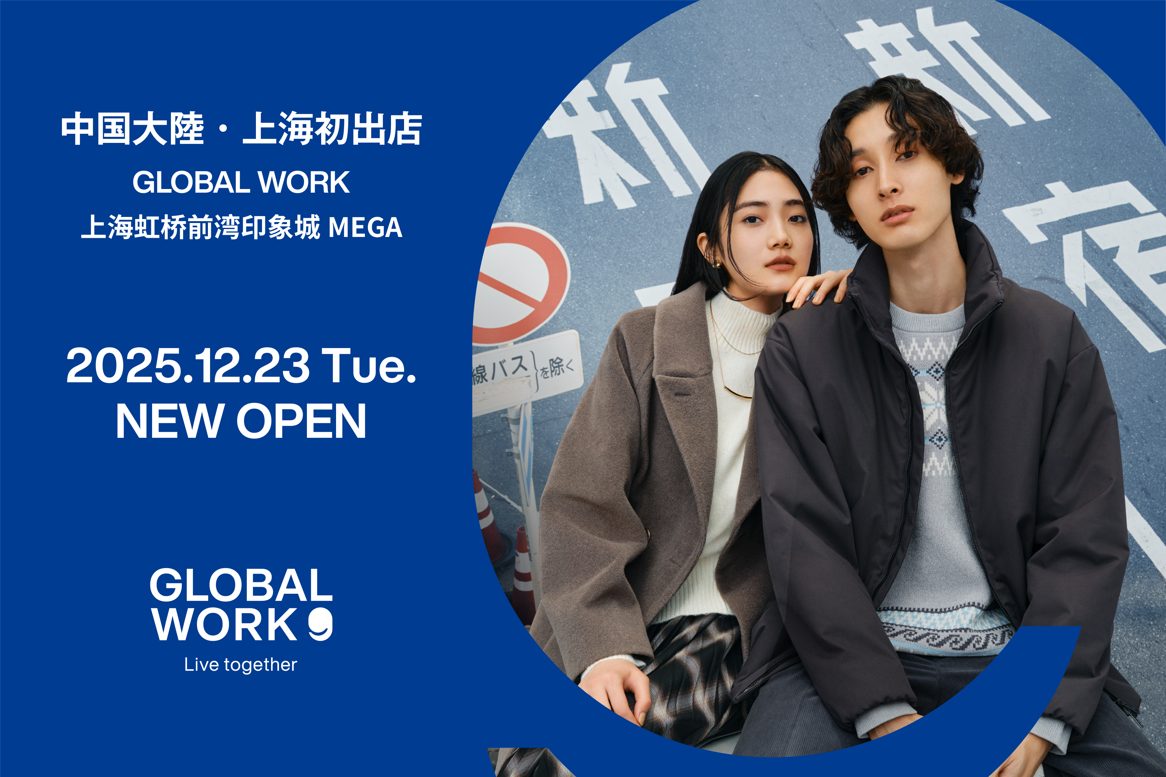 中国大陸・上海初出店!GLOBAL WORKが2025年12月23日(火)に1号店となる「GLOBAL WORK上海虹桥前湾印象城MEGA店」をオープン