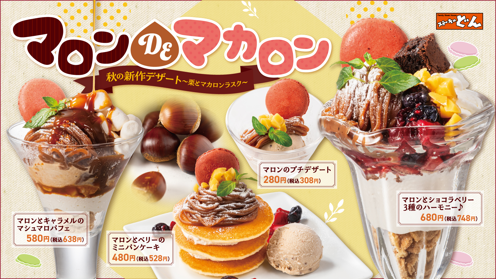 ステーキのどん 秋のデザートフェア【マロンDEマカロン】フェア開催!栗とマカロンの甘~い組み合わせで、秋の味覚を楽しもう♪