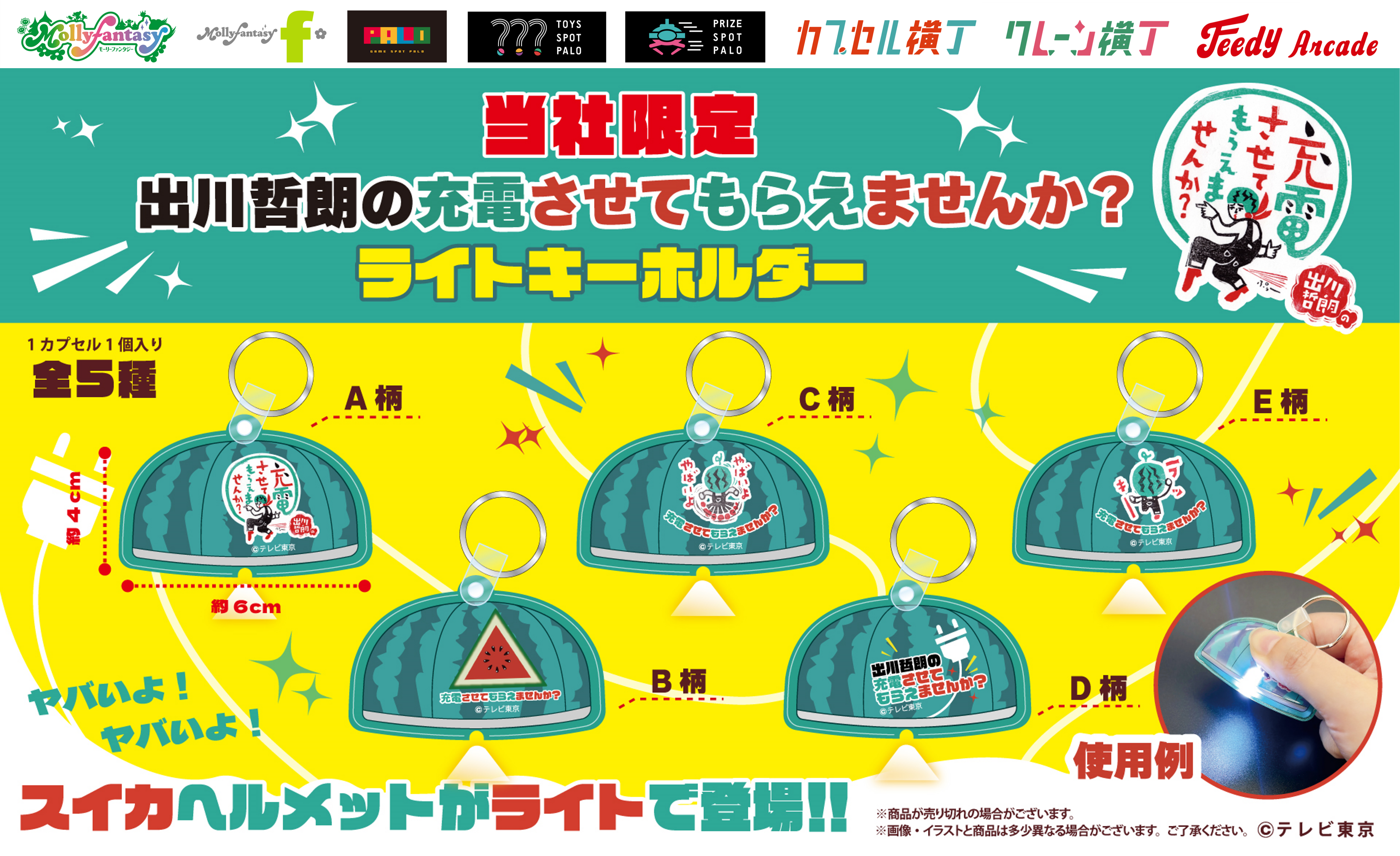 「ヤバイよヤバイよ~!」テレビ東京『出川哲朗の充電させてもらえませんか?』から あの「スイカヘルメット」がライトキーホルダーになって登場 9月17日(水)より「かぷえぼ」限定カプセルトイで展開開始